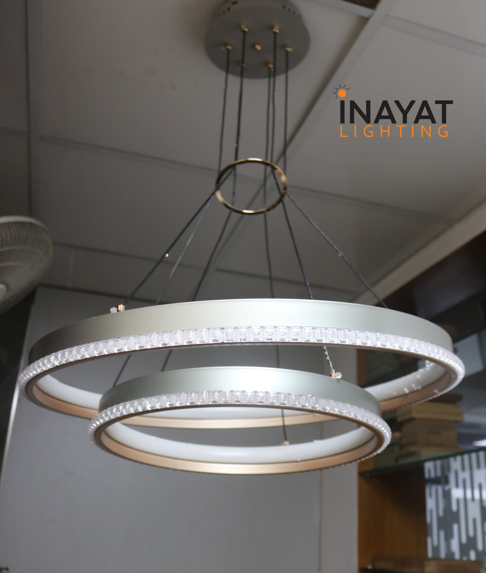 Name: ChandelierSize: Ring size 600mm,400mmWattage:110WChip: SananBody Color: silverTemperature: 3000KGuarantee: 2 Years
